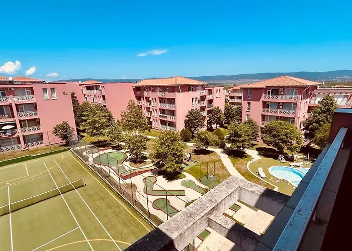 The 51 m^2 Sunny Day 6, Apartment 35 Sunny Beach is located 4.3 km from Iceberg Party Club and within a 10-minute drive of Action Aquapark. The apartment comes with a private swimming pool and a terrace overlooking the garden.